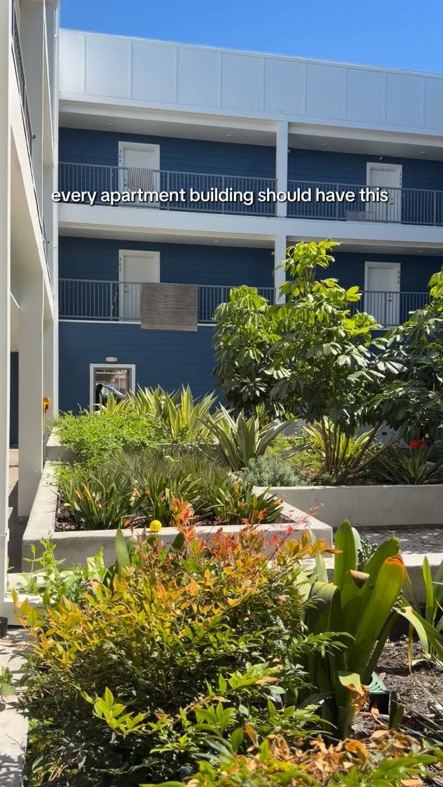 This apartment complex showcases a series of raised planters filled with vibrant, lush shade plants that create a rich, tropical jungle aesthetic. These plantings are not only visually striking—they’re also part of a stormwater management strategy. Designed as raised Low Impact Development (LID) planters, they serve a dual purpose: capturing and filtering stormwater runoff from the roof, then slowly releasing it offsite. The result is a beautiful and sustainable landscape that blends ecological function with bold, immersive design.